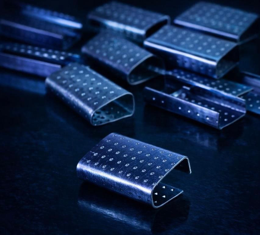 Heavy-duty galvanized clips used to seal PP or PET straps securely. Ideal for both manual and semi-automatic strapping systems.